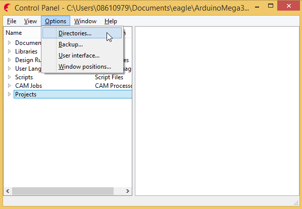 Now open Eagle Software and click on "Options" and then on "Directories"