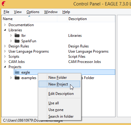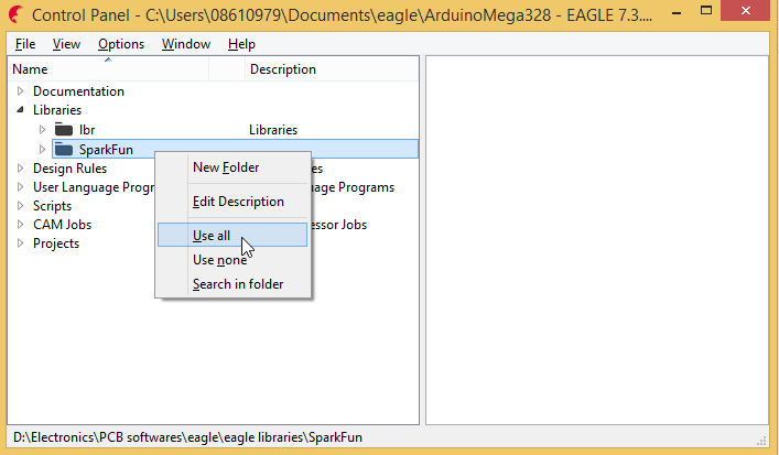 Also to make sure that SparkFun components are selected, Right click on "SparkFun" and click on "Use all"