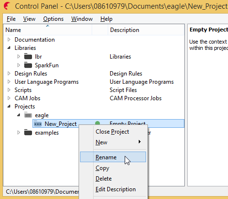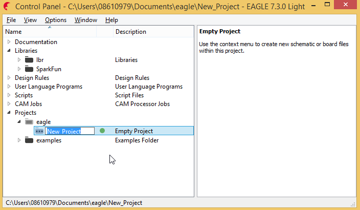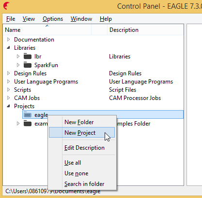 Expand "Projects", right click on "eagle" and click on "New Project"