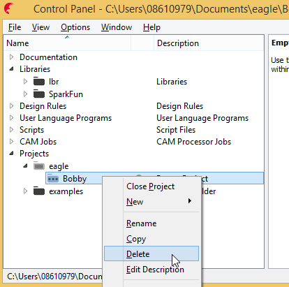 Opss!... Eagle will not delete an open project