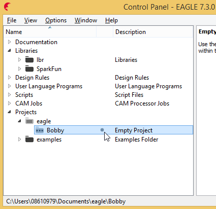 I just named it as "Bobby". Now that is not a very good choice of name. The project should be name according to the function/purpose.