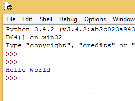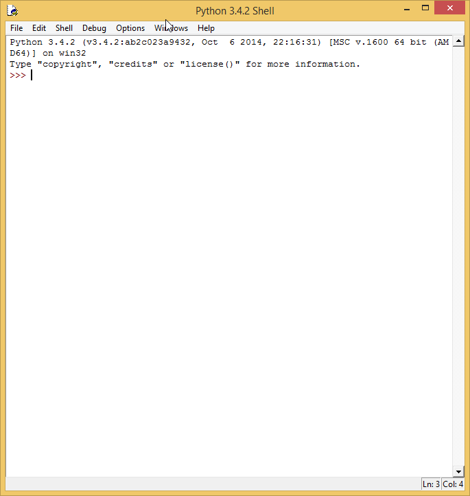 This will open up the shell window as shown below. The ">>>" symbol is where you type your commands