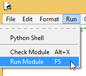 you would now wish to run it. For that you just have to click on Run > Run Module or hit F5