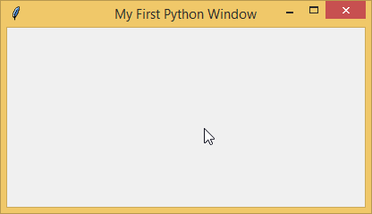 myFirstGui = Tk() myFirstGui.geometry('400x200+200+100') myFirstGui.title('My First Python Window') myFirstGui.mainloop()