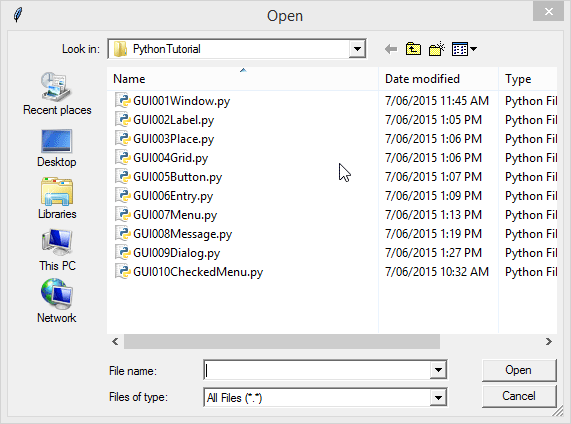 myFileMenu.add_command(label = "Open", command = myFileOpen)