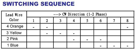There are 8 different steps (these 8 steps is one step loop) for the stepper to move forward. Every step will make the shaft rotate with an angle of 5.625/64 degree.So if we want the shaft to revolve one circle, then the step loops we should make is 360/(8*5.625/64)=512(step loops).